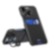 Læderstativ etui til iPhone 14 cover kortpung med stativ sort