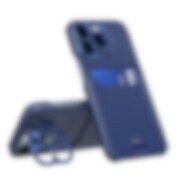 Leather Stand Case for iPhone 14 Pro Max cover card wallet with stand blue