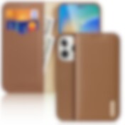 Dux Ducis Hivo Læder Flip Cover Ægte læderpung til kort og dokumenter iPhone 14 Plus Brun