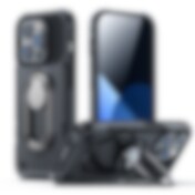 Joyroom Dual Hinge-etui til iPhone 14 Pro pansret etui med en stander og en ringholder sort