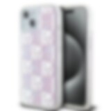 DKNY læderetui med ternet mønster og trykte striber til iPhone 15 / 14 / 13 - pink