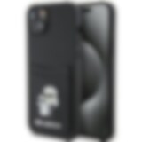 Karl Lagerfeld Saffiano Cardslot Karl&Choupette Metal Pin etui til iPhone 15 - sort