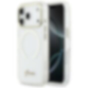 Guess IML Shell Script Metal MagSafe-etui til iPhone 17 Pro Max - Hvid