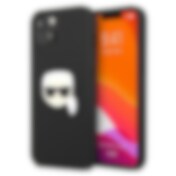 Karl Lagerfeld Ikonik Karl's Head metaltaske i læder til iPhone 13 mini - Sort