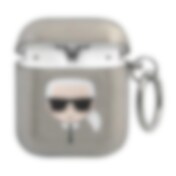 Karl Lagerfeld Glitter Karl's Head-etui til AirPods 1/2 - sølv