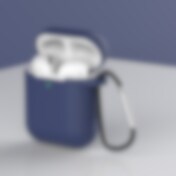 Blødt silikone etui til AirPods 1/2 + nøgleringskarabin vedhæng blå (etui D)