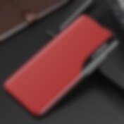 Eco Leather View Case til Samsung Galaxy S25+ med flap og stativ - rød