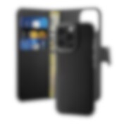Puro Wallet aftagelig MagSafe 2in1 PU-læderetui med klap og pung til iPhone 16 - Sort