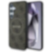 Guess 4G-farvet ring i læder Classic MagSafe-etui med logo Samsung Galaxy S25 Plus sort