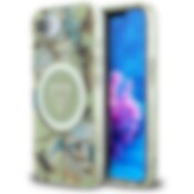 Guess IML Metal Glitter Flowers Triangle MagSafe iPhone 16e-etui - grøn