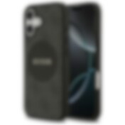 Guess Grained Hot Stamp Peony Triangle Logo MagSafe-etui til iPhone 16e - Sort
