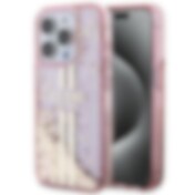 Guess Liquid Glitter Gold Stripes-etui til iPhone 15 Pro - pink