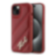 Karl Lagerfeld Diagonal Quilted Script-taske til iPhone 15 Pro - rød