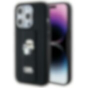 Karl Lagerfeld Gripstand Saffiano Karl&Choupette Pins-etui til iPhone 15 Pro Max - sort
