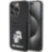 Karl Lagerfeld Saffiano Cardslot Karl&Choupette Metal Pin etui til iPhone 15 Pro - sort