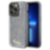 Guess Sequin Script Metal-etui til iPhone 14 Pro Max - sølv