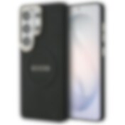 Guess Saffiano Peony Embossed Ring MagSafe-etui til Samsung Galaxy S26+ - sort