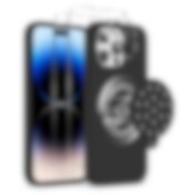 Skal med Magsafe og sugekop + skærm- og linsebeskyttelse til iPhone 14 - Svart