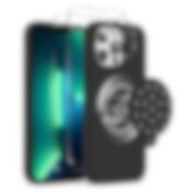 Skal med Magsafe og sugekop + skærm- og linsebeskyttelse til iPhone 13 - Svart