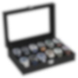 Urkasse til 10 ure - med glaslåg og blød fløjlsforing