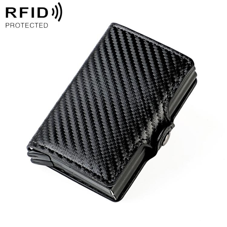Kortholder med RFID-beskyttelse og pop-up-funktion - kulfiberstil Svart