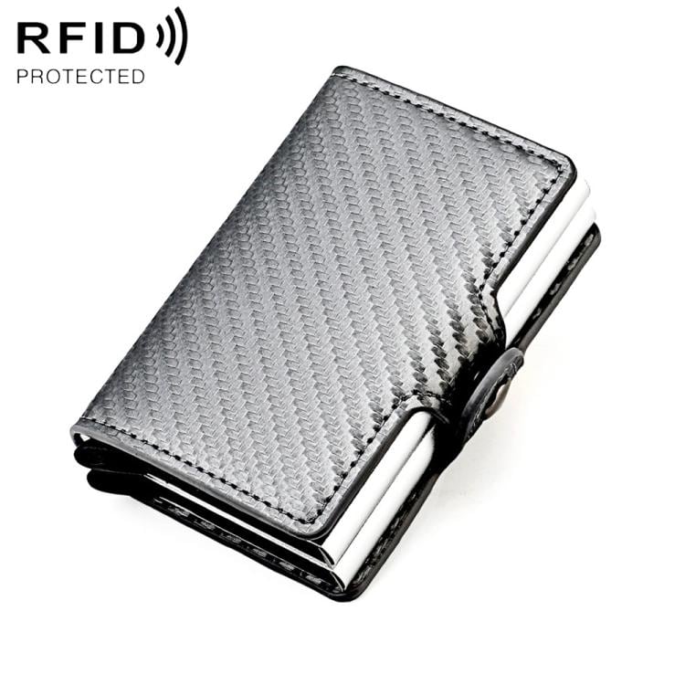 Kortholder med RFID-beskyttelse og pop-up-funktion - kulfiberstil Sølv