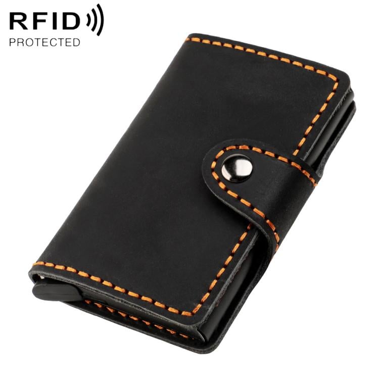 Kortholder i læder med RFID-beskyttelse og pop-up-funktion - Svart