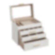 Smykkeskrin med glaslåg og 3 skuffer - Hvid/guld