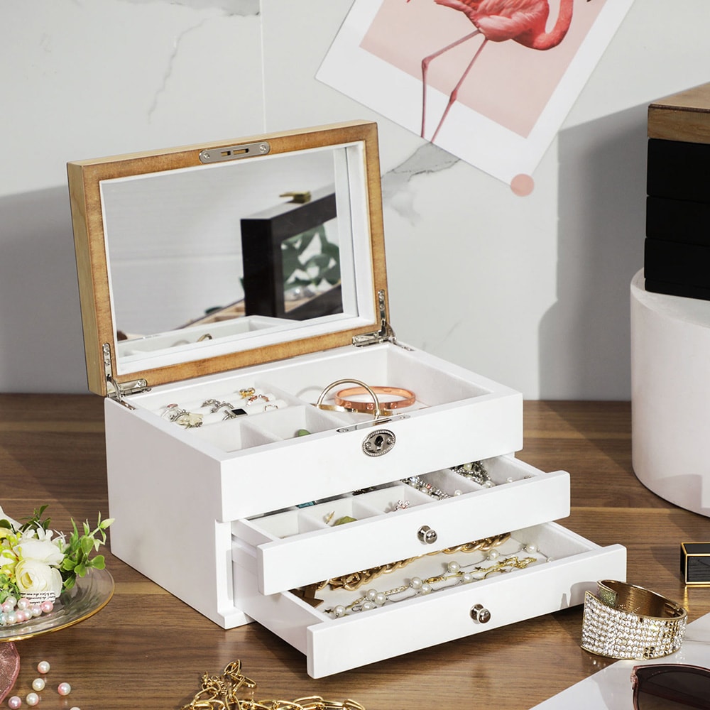 Smykkeskrin med 3 skuffer og et spejl - Hvid