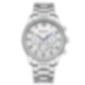 Curren analogt herreur - sølv/hvid med lænke i rustfrit stål