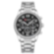 Curren analogt herreur - sølv/svart med lænke i rustfrit stål