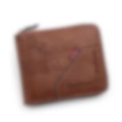 Pung i imiteret læder med lynlås og mange rum - Lysebrun