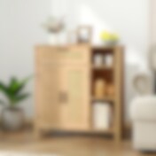 TV-bænk med rattan og glasdøre 120,5x45,5cm