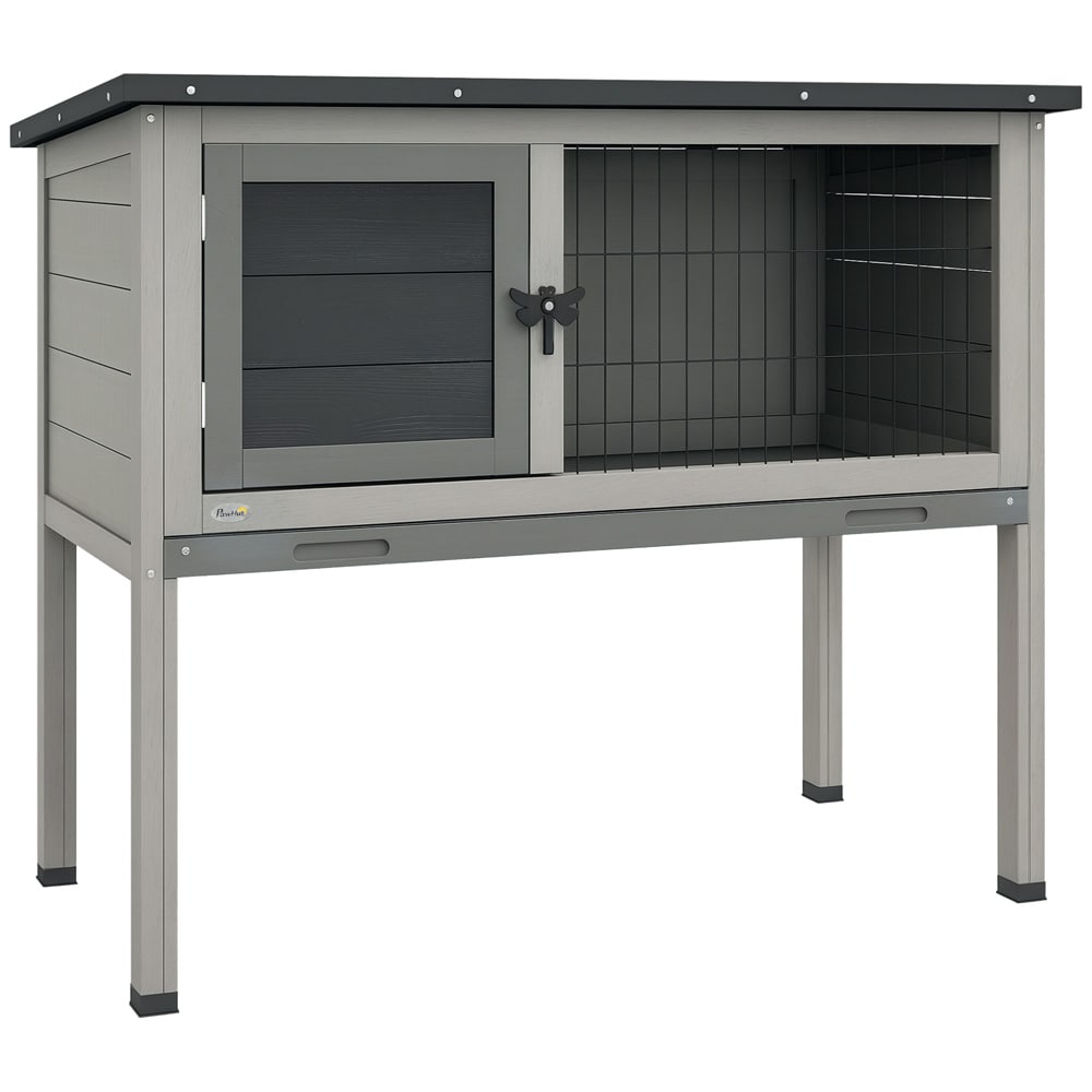 Kaninbur med åbent tag / hævet kaninbur i træ / bur til små dyr med udtræksbakke - Grå