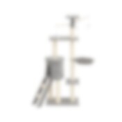 Kradsetræ med hytte, højde 135 cm, seks niveauer, muselegetøj og sisal